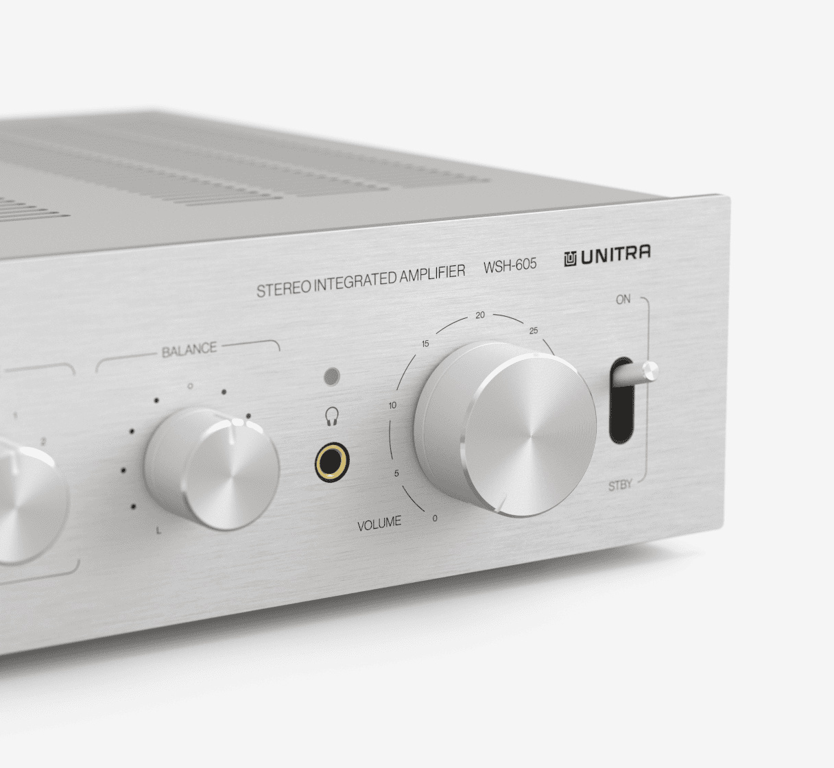 El diseño del WSH-605 combina elegancia clásica con funcionalidad práctica. Todo el chasis es de metal, con un fino acabado de aluminio cepillado en el panel frontal. Para un manejo cómodo y un ajuste preciso, el panel cuenta con amplios y robustos controles de selección de fuente y de volumen/balance/tono, así como distintivos interruptores de palanca de estilo retro. El diseño minimalista y la exquisita artesanía resaltan la calidad de los materiales y la meticulosa atención al detalle de los diseñadores.