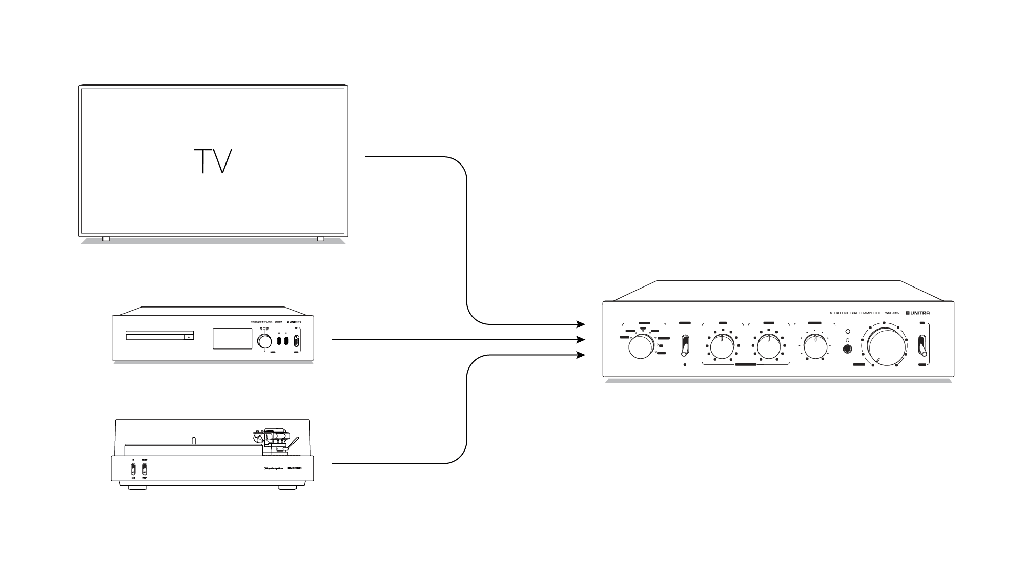 AUX, Sintonizador, Streamer, CD, Phono + GND (MM)