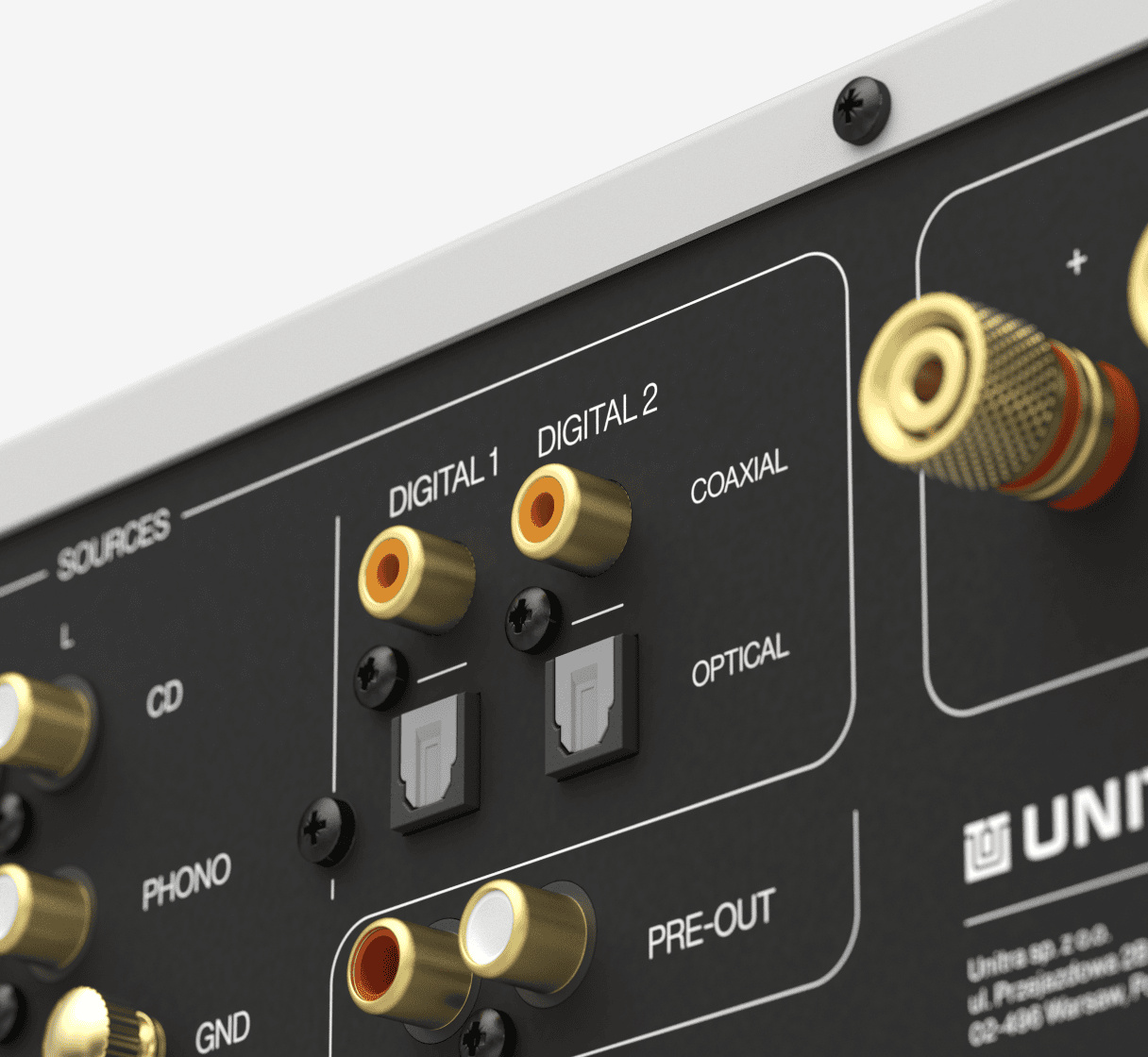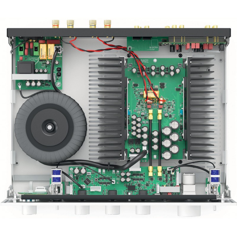 La sección del preamplificador incluye controles precisos de volumen y tono, un selector de fuente, una etapa de phono para cápsulas MM y un DAC ESS Sabre con cuatro entradas digitales. Para garantizar una calidad de señal impecable, todas las conexiones entre las entradas del panel trasero y los potenciómetros del panel frontal están balanceadas para minimizar las interferencias.
