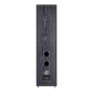 • Gabinete sólido de MDF de baja resonancia con bordes redondeados en la parte delantera y trasera