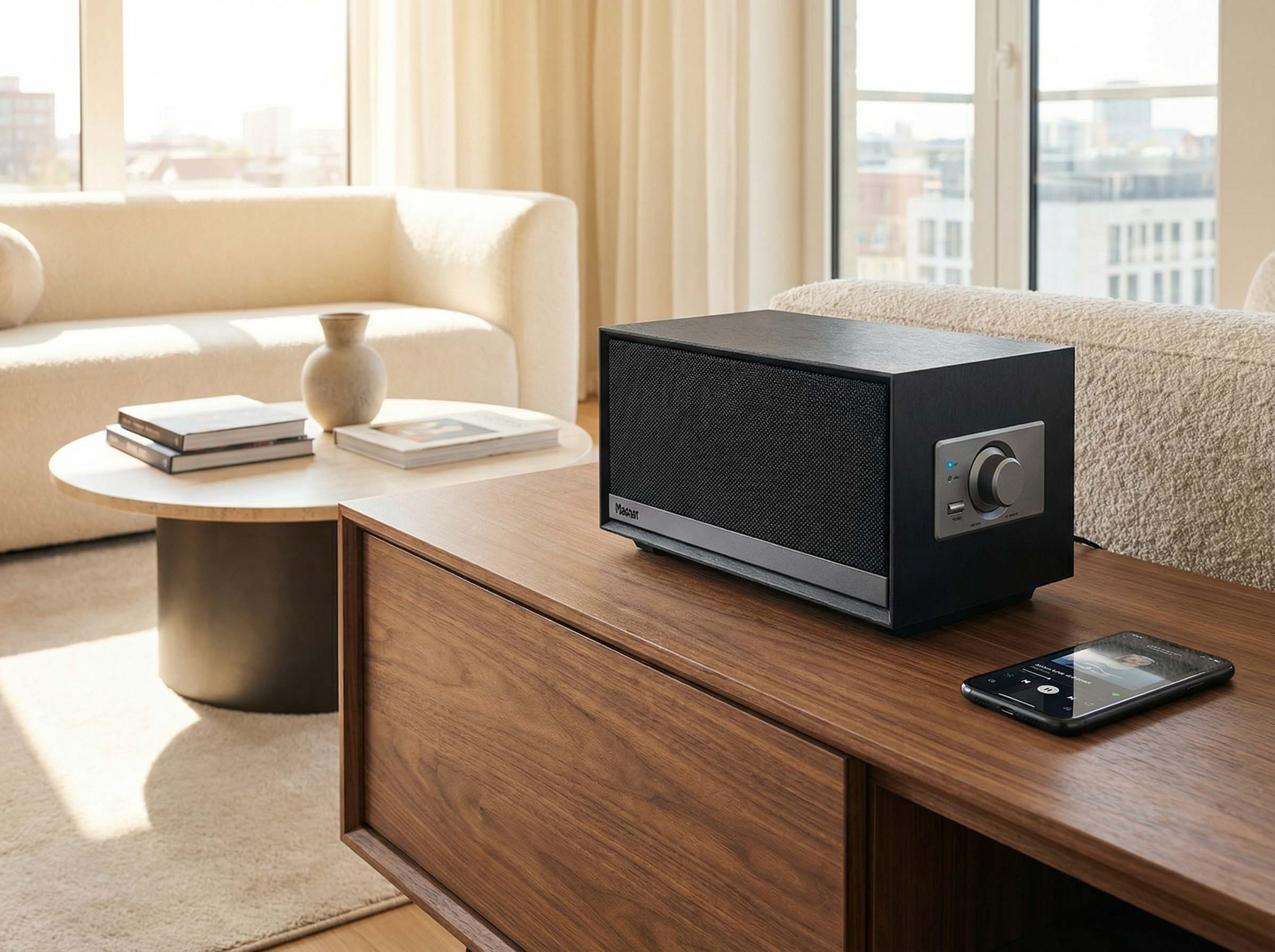 Musicalmente, el Prime Shadow es un verdadero todoterreno. Convence por su sonido siempre agradable en todos los estilos musicales, sin descuidar los detalles ni la dinámica. Gracias al potente dúo de tonos graves, ofrece un sonido extremadamente potente y una reproducción de graves nítida. El dúo estéreo en su parte frontal reproduce de forma concisa y precisa y ofrece un sonido impresionantemente dinámico y natural. Gracias a Bluetooth®, Prime Shadow está abierto a todas las fuentes de streaming y servicios de música modernos. El compacto Prime Shadow llena la habitación de música sin problemas: un talento sonoro universal con sonido Magnat de máxima calidad.