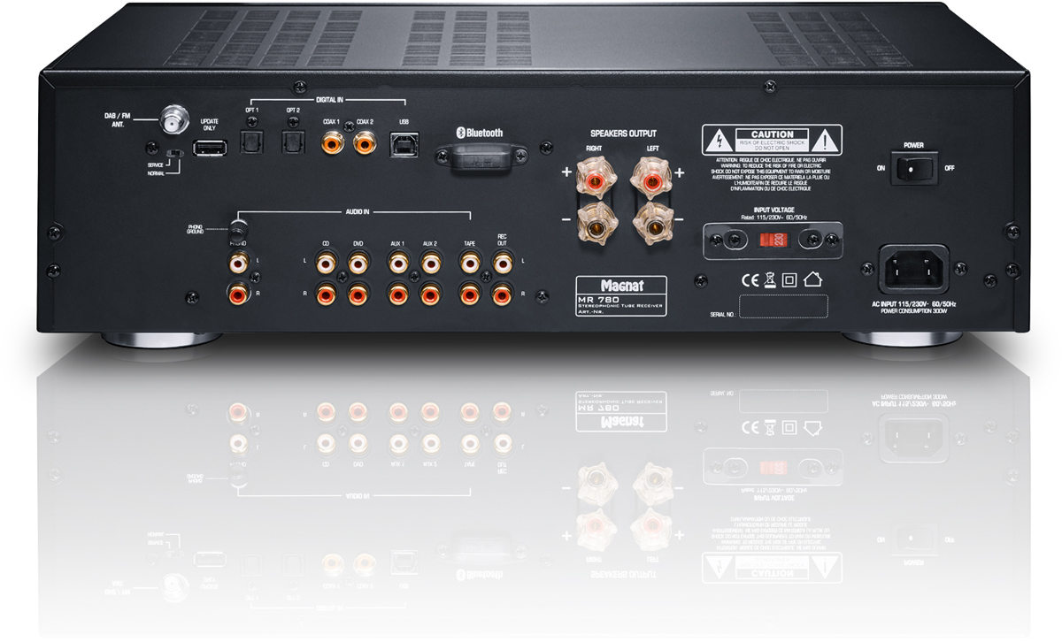 El receptor estéreo MR 780 sigue el exclusivo concepto híbrido de Magnat: en la etapa de preamplificación funcionan dos válvulas ECC 81 quemadas seleccionadas, que proporcionan a todo el sistema los sonidos cálidos y audiófilos tan aclamados entre los aficionados a la alta fidelidad. La potente etapa de salida de transistor de diseño discreto produce 100 vatios de potencia RMS por canal a 4 ohmios. También en este caso se han estabilizado cuidadosamente las tensiones de todos los circuitos individuales. De esta manera, el MR 780 combina un sonido perfecto y la máxima potencia para un resultado general óptimo y un sonido de alta fidelidad de primera clase.