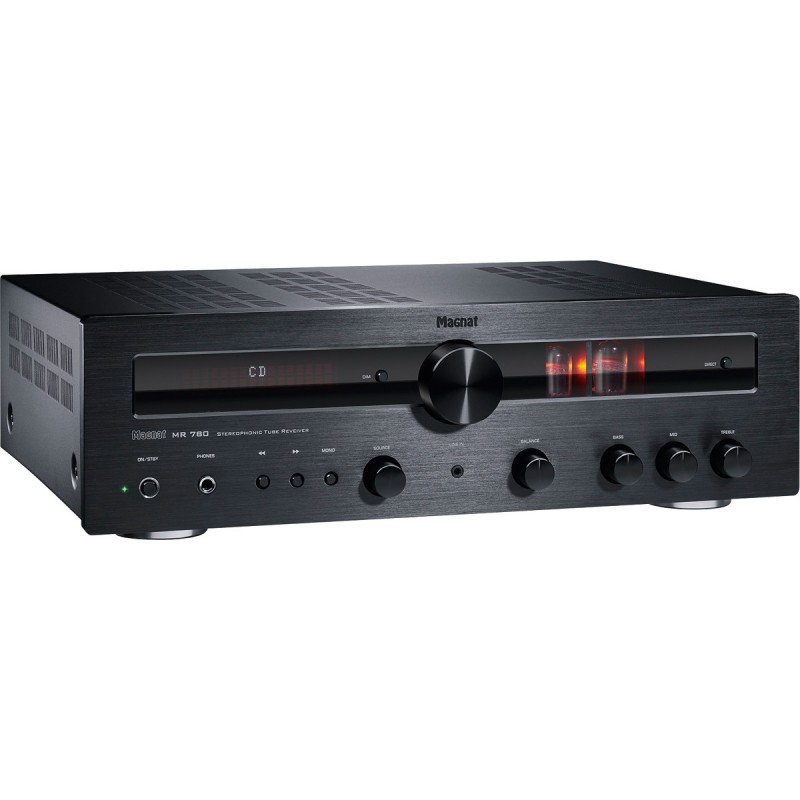 El receptor estéreo MR 780 sigue el exclusivo concepto híbrido de Magnat: en la etapa de preamplificación funcionan dos válvulas ECC 81 quemadas seleccionadas, que proporcionan a todo el sistema los sonidos cálidos y audiófilos tan aclamados entre los aficionados a la alta fidelidad. La potente etapa de salida de transistor de diseño discreto produce 100 vatios de potencia RMS por canal a 4 ohmios. También en este caso se han estabilizado cuidadosamente las tensiones de todos los circuitos individuales. De esta manera, el MR 780 combina un sonido perfecto y la máxima potencia para un resultado general óptimo y un sonido de alta fidelidad de primera clase.