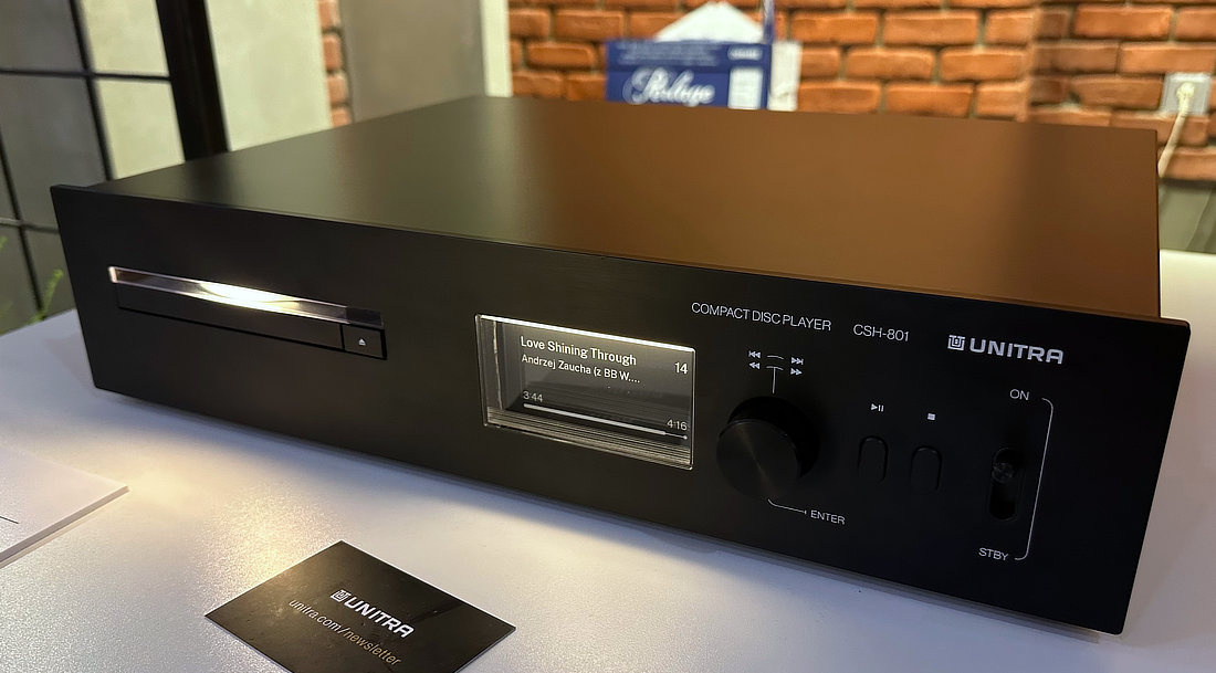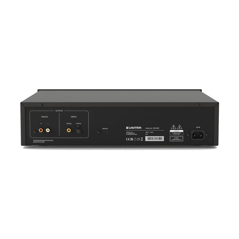 Reproductor de CD con DAC y función de transporte. Presenta un diseño que combina con el estilo de la nueva línea de dispositivos de Unitra y una interfaz única con una pantalla de tinta electrónica retroiluminada con un agradable y natural aspecto de tarjeta. Su diseño se complementa con un panel frontal de aluminio y un visor de CD. Un DAC integrado permite conectar el reproductor directamente a un amplificador analógico, y las salidas digitales permiten la comunicación opcional con un convertidor externo.