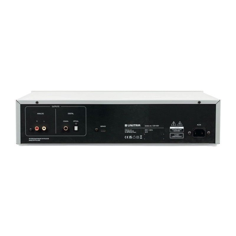 Reproductor de CD con DAC y función de transporte. Presenta un diseño que combina con el estilo de la nueva línea de dispositivos de Unitra y una interfaz única con una pantalla de tinta electrónica retroiluminada con un agradable y natural aspecto de tarjeta. Su diseño se complementa con un panel frontal de aluminio y un visor de CD. Un DAC integrado permite conectar el reproductor directamente a un amplificador analógico, y las salidas digitales permiten la comunicación opcional con un convertidor externo.