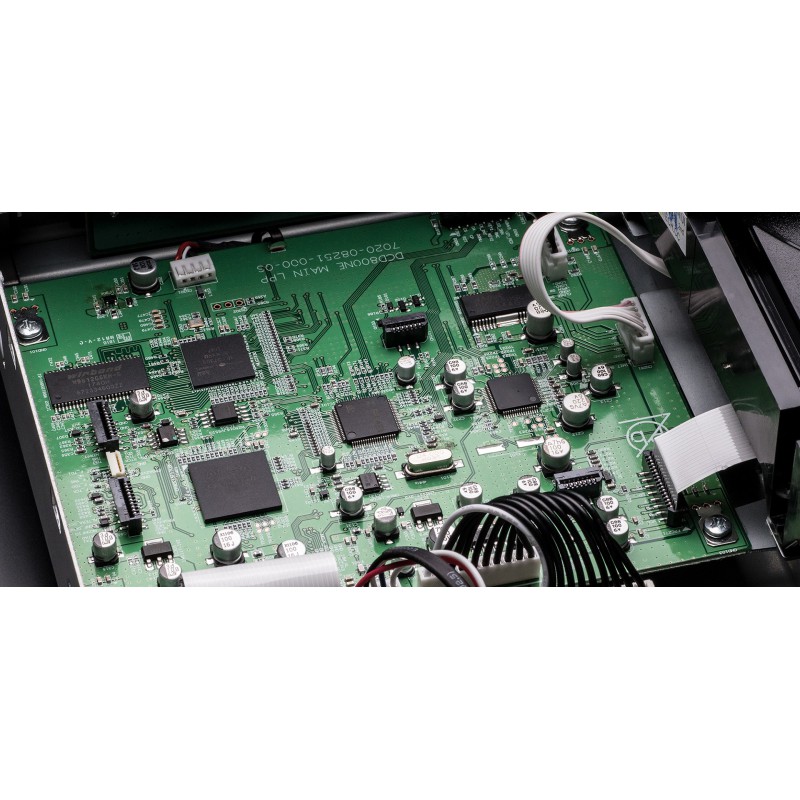 Con el fin de sincronizar con precisión los circuitos digitales, el diseño de reloj maestro DAC del DCD-800NE considera el DAC como maestro cuando se transmiten las señales de reloj. La posición del reloj maestro, adyacente al convertidor D/A (DAC) permite suprimir el jitter y garantiza una óptima precisión en la conversión D/A. Sirve de referencia para las operaciones de semiconductores y optimiza los circuitos de audio digitales. Dos osciladores de reloj integrados, uno para cada frecuencia de muestreo (44,1 kHz y 48 kHz) reducen el ruido de fase. El reloj maestro DAC ofrece un resultado excepcional con múltiples frecuencias de muestreo, desde 44,1 kHz hasta 192 kHz, e incluso con DSD de 5,6 MHz, sin redondeos.